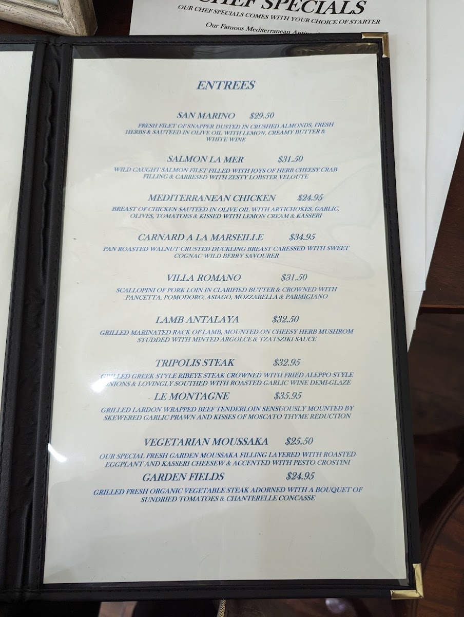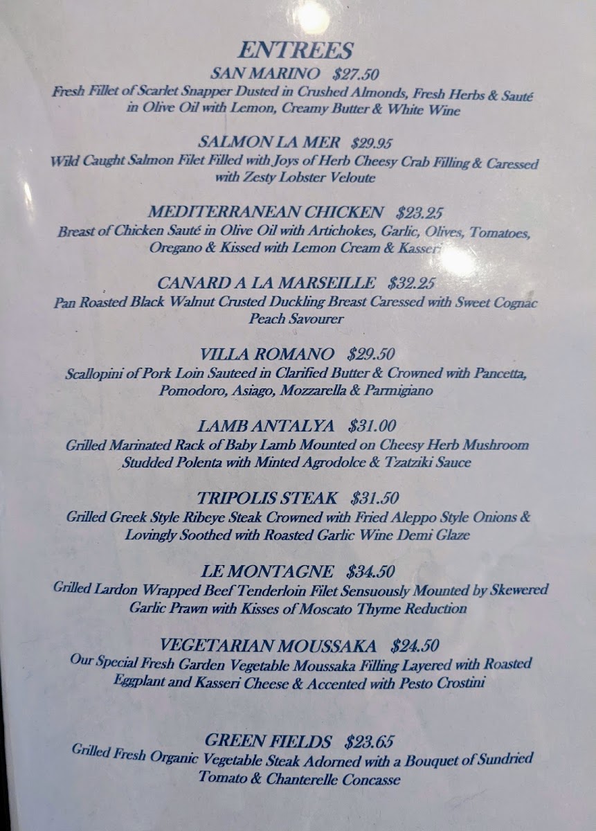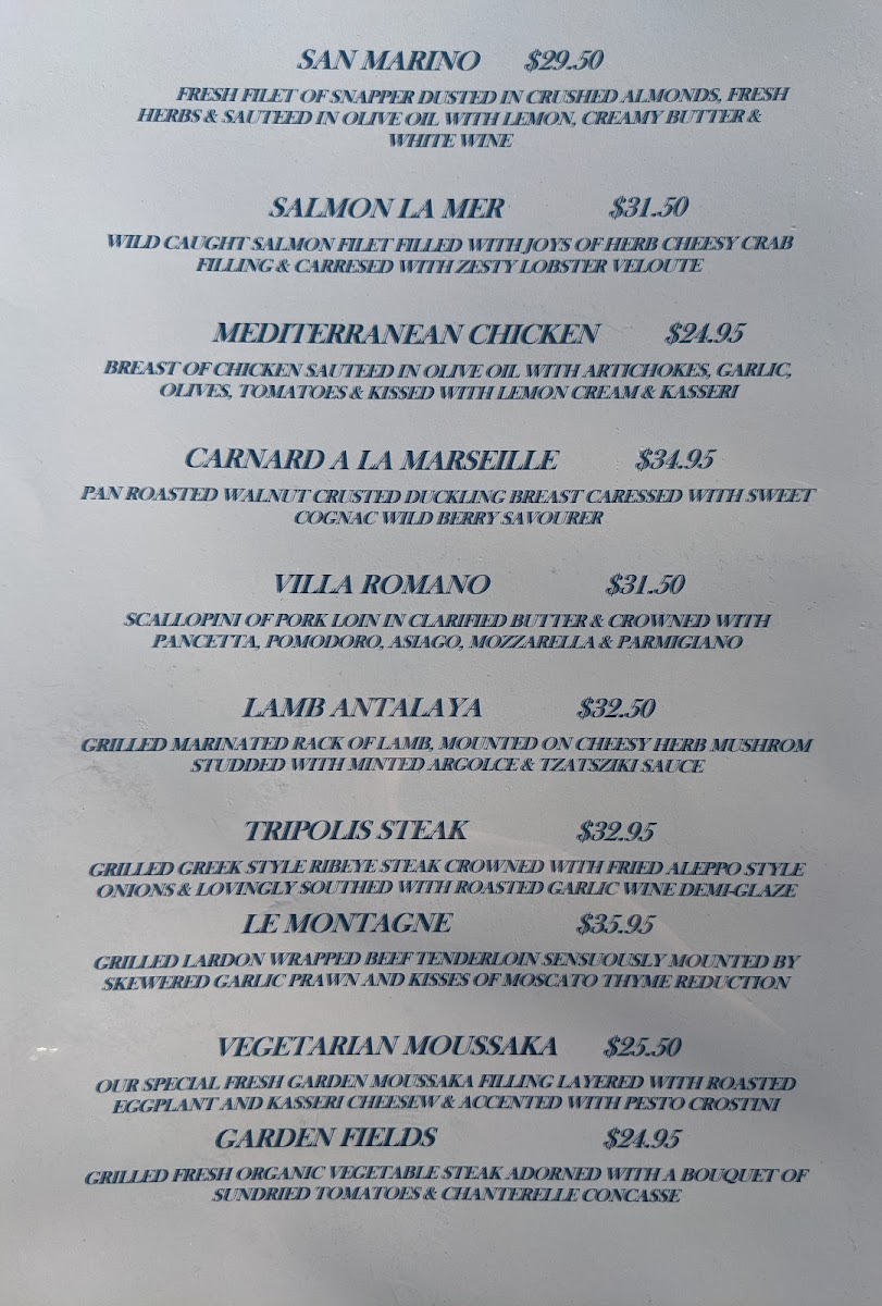 Many guests enjoy the antipasto salad bar, a highlight that complements the relaxed yet refined atmosphere, allowing for a light, flavorful appetizer or a satisfying side. Fresh baked bread and thoughtfully prepared soups round out the menu, providing familiar comforts with a subtle Mediterranean twist.