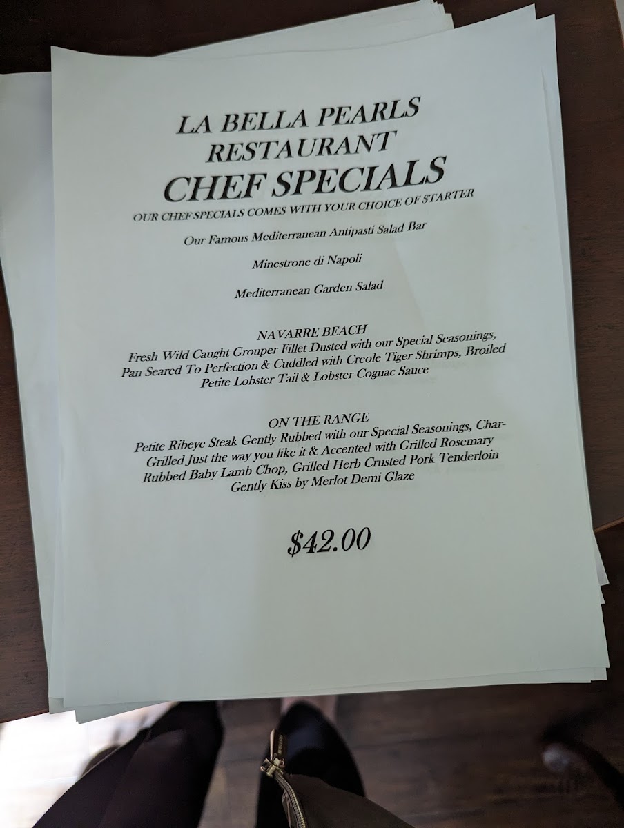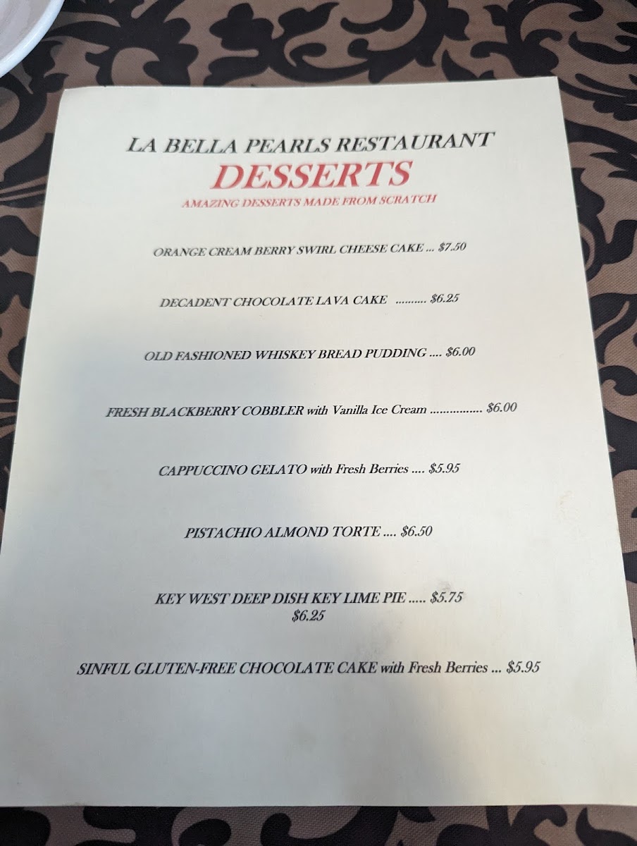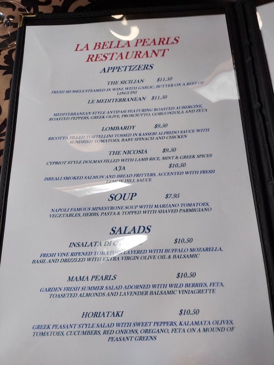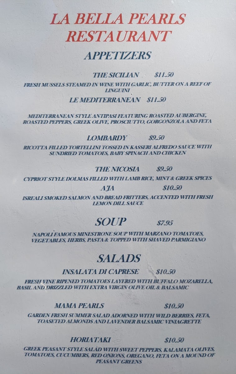 La Bella Pearl's Menu